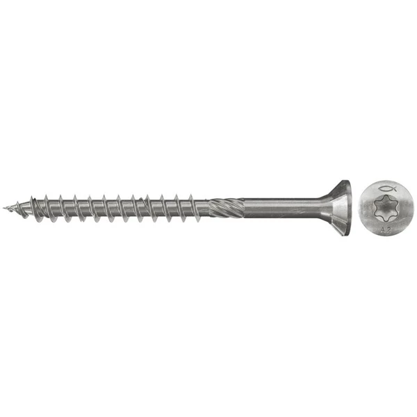 La fischer PowerFast 4.5×70 tête contre-enfoncée TX A2 est une vis en acier inoxydable A2 avec filetage partiel et entraînement TX 20. Il est particulièrement adapté à une utilisation en extérieur et aux pièces humides. La vis avec tête contre-enfoncée et nervures de fraisage sous la tête peut être encastrée dans le bois. Le PowerFast avec revêtement coulissant haute performance réduit le couple vissé et permet également de visser près du bord sans aucun problème. La géométrie optimisée de la tête permet une finition de surface exacte et sans éclats sans arracher la vis, même avec des connexions de vis proches du bord. Les nervures de fraisage d’extrémité réduisent la résistance de contact et assurent ainsi un travail sans puissance et sans batterie. Le filetage partiel de 42 mm de long permet de tirer fermement les éléments en bois ensemble. La vis de panneau de particules PowerFast convient à la fixation de composants porteurs en bois revêtu, en bois dur, en résineux et aux connexions en bois ou aux connexions de pièces métalliques sur bois, telles que les raccords métalliques, les angles, les chaussures à poutre et autres connexions en métal et en bois.