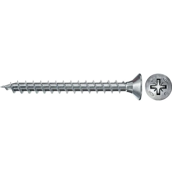 La fischer PowerFast II FPF II CZF BC 3.0×16 est une vis passivée bleue galvanisée avec filetage complet et entraînement PZ 1. La galvanisation galvanique ne contient aucune teneur en chrome VI et est donc très respectueuse de l’environnement. Les vis filetées complètes sont recommandées pour fixer des composants minces et dans des matériaux à base de bois moins massif (par exemple, les résineux). La vis avec tête contre-enfoncée peut être encastrée au ras de la surface dans le bois. Le PowerFast II avec revêtement de cire haute performance réduit le couple de vissage et permet également de visser près du bord sans aucun problème. La vis en aggloméré a un comportement béant considérablement réduit par rapport aux autres vis disponibles dans le commerce. La vis en aggloméré PowerFast II convient à la fixation de composants porteurs en bois massif, en lamellé-collé, en panneaux à base de bois et aux connexions en bois ou aux connexions de pièces métalliques sur bois, telles que des raccords métalliques, des angles, des sabots de poutre et d’autres connexions en métal et en bois.