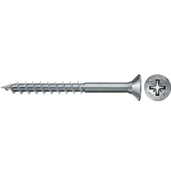 La fischer PowerFast II FPF II CZP BC 3.0×40 est une vis passivée bleue galvanisée avec filetage partiel et entraînement PZ 1. La galvanisation galvanique ne contient aucune teneur en chrome VI et est donc très respectueuse de l’environnement. La vis avec tête contre-enfoncée peut être encastrée au ras de la surface dans le bois. Le PowerFast II avec revêtement de cire haute performance réduit le couple de vissage et permet également de visser près du bord sans aucun problème. La vis en aggloméré a un comportement béant considérablement réduit par rapport aux autres vis disponibles dans le commerce. Le filetage partiel de 28 mm de long permet de tirer fermement les éléments en bois ensemble. La vis en aggloméré convient à la fixation de composants porteurs dans du bois revêtu, du bois franc, du bois résineux et pour les connexions en bois ou les connexions de pièces métalliques sur bois, telles que les raccords métalliques, les angles, les chaussures à poutre et autres connexions en métal et en bois.