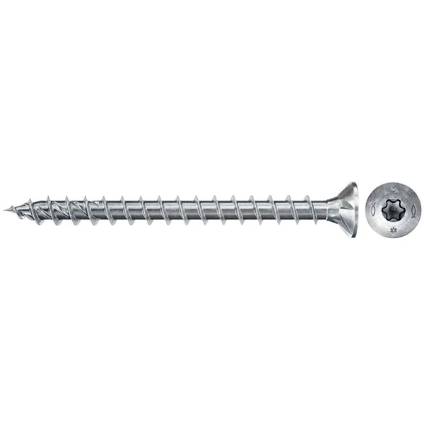La fischer PowerFast II FPF II CTF BC 5.0×70 est une vis passivée bleue galvanisée avec filetage complet et entraînement TX 20. La galvanisation galvanique ne contient aucune teneur en chrome VI et est donc très respectueuse de l’environnement. Les vis filetées complètes sont recommandées pour fixer des composants minces et dans des matériaux à base de bois moins massif (par exemple, les résineux). La vis avec tête contre-enfoncée peut être encastrée au ras de la surface dans le bois. Le PowerFast II avec revêtement de cire haute performance réduit le couple de vissage et permet également de visser près du bord sans aucun problème. La vis en aggloméré a un comportement béant considérablement réduit par rapport aux autres vis disponibles dans le commerce. La vis en aggloméré PowerFast II convient à la fixation de composants porteurs en bois massif, en lamellé-collé, en panneaux à base de bois et aux connexions en bois ou aux connexions de pièces métalliques sur bois, telles que des raccords métalliques, des angles, des sabots de poutre et d’autres connexions en métal et en bois.