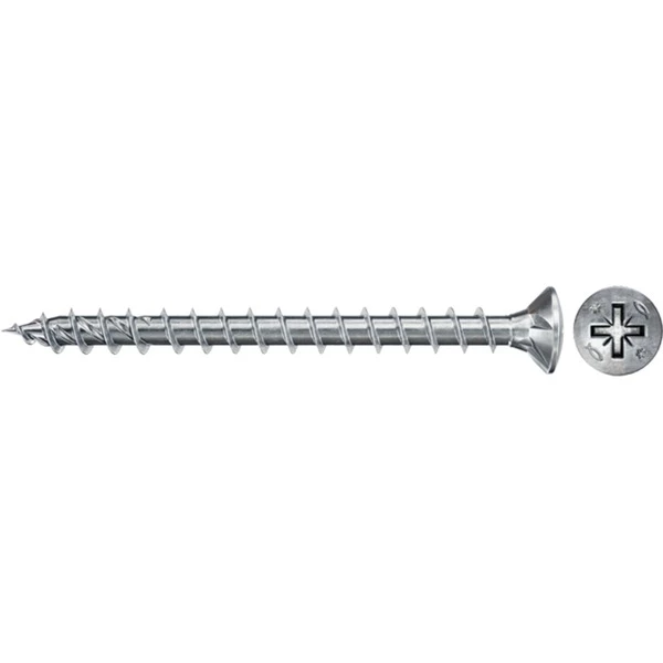 La fischer Power-Fast II FPF II CZF BC est une vis passivée bleue galvanisée avec filetage complet et fente Phillips pZ 2. La galvanisation galvanique ne contient aucune teneur en chrome VI et est donc très respectueuse de l’environnement. La vis avec tête contre-enfoncée peut être encastrée au ras de la surface dans le bois. Le Power-Fast II avec revêtement de cire haute performance réduit le couple vissé et permet également de visser près du bord sans aucun problème. La vis en aggloméré a un comportement béant considérablement réduit par rapport aux autres vis disponibles dans le commerce. La vis en aggloméré avec filetage de 14 mm de long convient à la fixation de composants porteurs en bois revêtu, en bois dur, en résineux et pour les connexions en bois ou les connexions de pièces métalliques sur bois, telles que les raccords métalliques, les angles, les chaussures à poutre et autres connexions en métal et en bois.