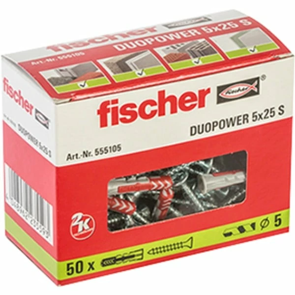 Fischer DUOPOWER 5×25 S, Cheville (Gris Clair/Rouge)