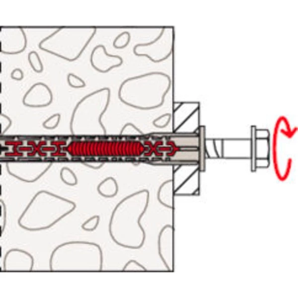 Le goujon à long arbre fischer DuoXpand 10×140 FUS à géométrie lamellaire spéciale s’étale doucement dans le matériau de construction et évite ainsi les ruptures dans les matériaux de construction poreux. Cela signifie que les ancrages proches du bord sont également possibles sans aucun problème. Le corps de base gris en nylon de haute qualité offre un soutien solide, tandis que le composant flexible en matériau rouge assure un étalement optimal. Le DuoXpand convient au montage par trou traversant. Dans les matériaux de construction solides, la conception coordonnée du produit offre une répartition uniforme de la charge dans le sous-sol, et dans la maçonnerie de pierre perforée, les lattes s’étendent sur le pont de pierre et forment une contre-dépouille dans la cavité. La version avec vis hexagonale galvanisée avec rondelle moulée est particulièrement adaptée à la fixation de structures métalliques, de consoles de câbles, d’abris d’auto, d’auvents en aluminium, de supports de télévision ou de cadres de fenêtres. La vis de sécurité pré-assemblée est parfaitement adaptée à la cheville à long arbre DuoXpand 10×140 FUS et permet de gagner du temps lors de l’assemblage.