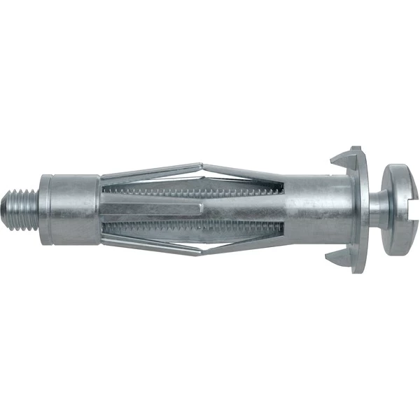 Le goujon métallique à cavité fischer HM 6×65 S est fourni avec une vis métrique pré-assemblée et convient à tous les matériaux de construction préfabriqués. Il est placé avec la pince de montage fischer HM-Z 1 dans l’ensemble pré-plug-in et tiré contre le matériau de construction préfabriqué dans la cavité. Les bras d’étalement s’ouvrent et pressent contre l’arrière de la plaque, ce qui assure une grande surface de contact et donc une capacité de charge élevée. Les griffes au bord de la cheville pénètrent également dans le matériau de construction préfabriqué, ce qui empêche la cheville de tourner. Le filetage interne métrique de la cheville métallique à cavité HM 6×65 S permet un desserrage et une fixation multiples de l’accessoire et offre une flexibilité optimale. Alternativement, le montage avec un tournevis ou un tournevis sans fil est également possible. Le goujon métallique à cavité HM 6×65 S convient, par exemple, à la fixation d’étagères lumineuses et d’armoires suspendues, de porte-serviettes ou de sous-structures à l’intérieur.
