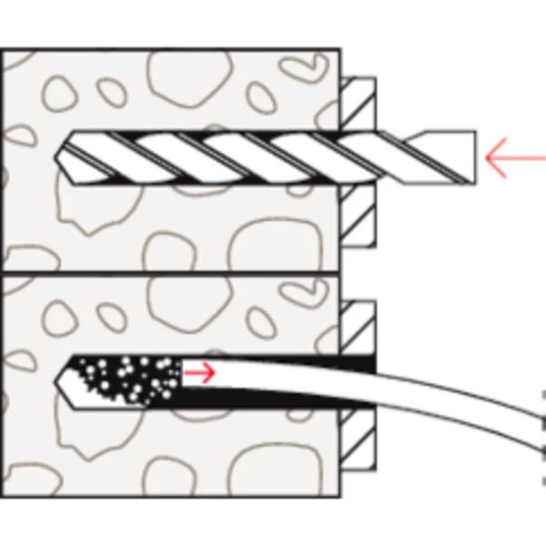 La cheville fischer à long arbre SXR 6×60 en nylon de haute qualité peut être utilisée dans les matériaux de construction solides et les matériaux de construction perforés grâce à sa géométrie de cheville spéciale. En raison de la faible profondeur d’ancrage de seulement 50 mm, il peut être traité de manière particulièrement économique. Le goujon à arbre long SXR 6×60 est recommandé, par exemple, pour la fixation de structures en bois, d’angles métalliques, de stores, de volets pliants, de supports métalliques ou de mains courantes.