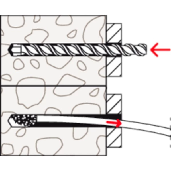 Le goujon fischer long arbre SXRL 8×120 T est un goujon en nylon de haute qualité avec vis de tête contre-enfoncée. Le long élément d’étalement avec trois profondeurs d’ancrage rend le SXRL très polyvalent dans l’application. Grâce à la géométrie spéciale du goujon, le SXRL peut être utilisé dans les matériaux de construction solides et les matériaux de construction perforés. Dans la maçonnerie en pierre perforée, les trois zones d’étalement de la cheville introduisent uniformément de la force, de sorte que les ponts ne sont pas détruits dans des matériaux de construction à paroi mince, dans le béton cellulaire et le matériau de construction solide, ils se combinent pour former un long élément d’étalement. Avec la vis de sécurité en acier galvanisé, le goujon à long arbre SXRL 8×120 T convient aux fixations intérieures telles que les fenêtres, les armoires, les armoires murales ou les consoles de télévision.