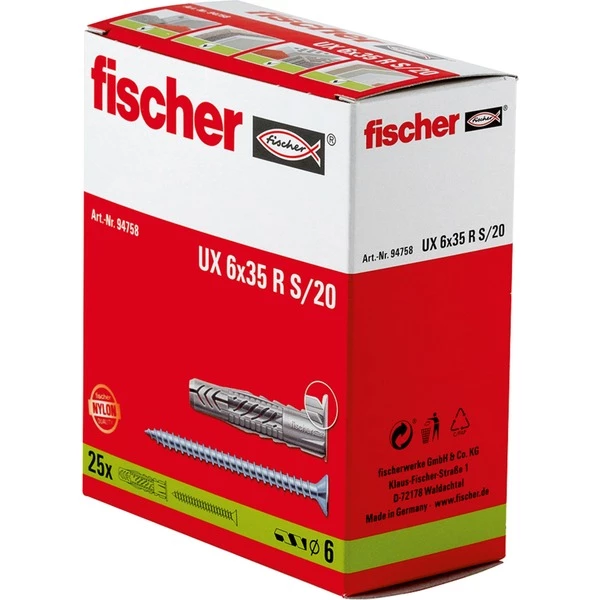 Fischer UX 6 X 35 R S/20, Cheville (Gris Clair, Nylon, Gris, 3,5 Cm, 6 Mm, 6,5 Cm, 2 Cm)