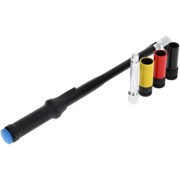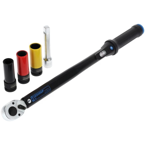 L’ensemble de clés dynamométriques 1/2 » TORCOFLEX UK 3550-UK-LS4 de GEDORE contient une clé dynamométrique avec fonction levier-changement de vitesse-cliquet intégrée pour un serrage à droite contrôlé dans la plage la plus courante de 40 Nm à 200 Nm. Le carré 1/2 » est équipé d’une protection de balle. L’échelle de couple est facile à lire à travers la fenêtre de visualisation avec effet de loupe. La livraison comprend un certificat de test selon la norme DIN EN ISO 6789-2:2017. Les 3 inserts de clé à douille fournis (version longue) sont équipés d’un manchon en plastique à l’extérieur pour protéger les jantes lors de la fixation des boulons de roue. Ils sont donc idéaux pour le montage de jantes en aluminium sensibles.