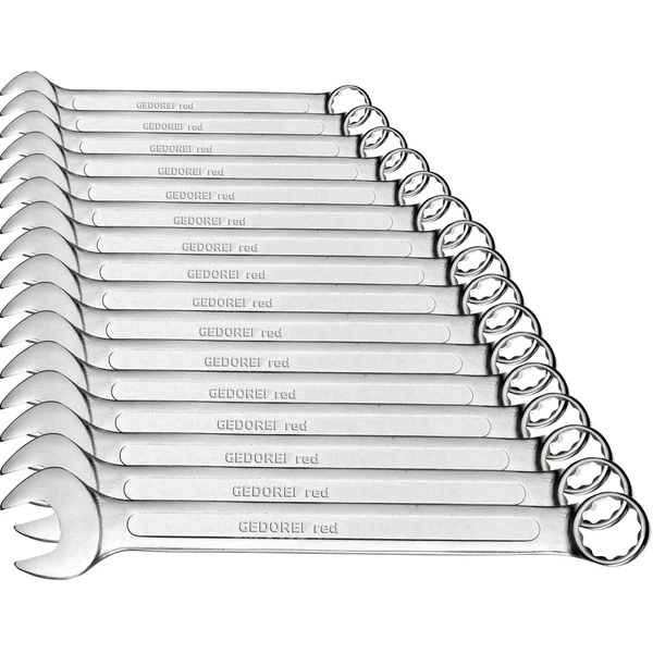 L’ensemble de clés à anneau R09115016 de GEDORE Red contient 16 clés à anneaux de dimensions de pouce avec les mêmes largeurs de clé des deux côtés. Les touches sont en acier chrome-vanadium et chromées mates. Le côté de l’anneau est incliné de 15 °, la position de la bouche est de 15 °. L’ensemble R09115016 contient des tailles de pouce courantes dans une combinaison pratique.