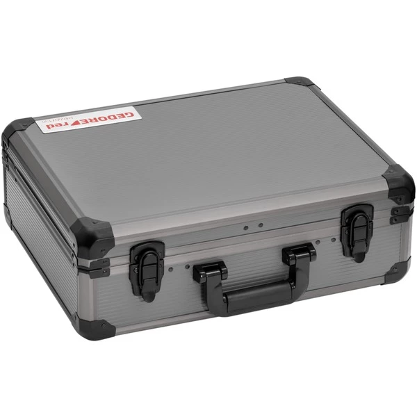 L’ensemble d’outils universel R46007138 de conception rouge GEDORE contient 138 outils sécurisés par pince, y compris deux cliquets de commutation de levier, une pince, un marteau, une pince de pompe à eau réglable à 7 voies, un tournevis d’angle avec rotule, tournevis et clé, lampe de poche LED, jeu de ciseaux, couteau de coupe, planche à genoux, niveau esprit, clé à fourche roulante. Il convient aux boîtiers à vis à commande manuelle. La plupart des outils sont en acier chrome-vanadium et chromé satiné mat. Les cliquets de changement de vitesse 2K offrent une rotation droite/gauche (commutable par levier) et un bouton-poussoir de déverrouillage. Ils sont finement dentés avec 72 dents, ont un angle de retour de 5°, une tête ovale et une poignée à 2 composants.