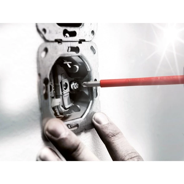 Le tournevis de remplacement Wera Kraftform VDE/7 Heavy Metal 2 se compose de sept pièces, 2x fente, 2x TORX et 3x tournevis cruciforme, avec une isolation testée VDE. Il est ainsi possible de travailler en toute sécurité jusqu’à 1 000 volts. Certains des tournevis ont un diamètre de lame réduit et une isolation de protection intégrée, de sorte que même les éléments à vis et à ressort bas peuvent être atteints et utilisés. Avec la poignée de forme de force multi-composants développée par Wera, toute la main trouve le contact avec la poignée. Les zones lisses et dures glissent à travers la main comme des roues lors de la préhension et permettent des vitesses de travail particulièrement élevées. Les zones souples et adhérentes sont des surfaces d’installation optimales pour la main et permettent une transmission de puissance élevée. Le localisateur d’outils « Take it easy » avec code couleur en fonction des profils et de l’estampage de taille facilite également la recherche dans le sac à outils. La protection hexagonale contre les rouleaux empêche le roulis gênant sur le lieu de travail. L’ensemble de tournevis est livré avec un rack qui peut être fixé au mur. Cela garantit un stockage approprié et un accès rapide. Un porte-clés, qui a la forme d’un salut Heavy Metal Tool Rebel et sert également d’ouvre-bouteille, est inclus.