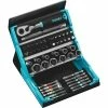 Le Kraftform Kompakt 900 Set 1 de Wera contient un tournevis à percussion manuelle et 18 embouts robustes extra longs avec entraînement de 1/4 « . Le tournevis à percussion 921 Kraftform Plus combine les avantages des clés à chocs manuelles, des outils compacts et des tournevis avec une lame continue. La fonction de vissage manuel peut être activée si nécessaire pour desserrer même les connexions à vis tenaces. L’impulsion d’impact du marteau est convertie en un mouvement rotatif avec un couple de libération allant jusqu’à 25 Nm lorsque la fonction de vis d’impact est activée. La transmission de puissance s’effectue sans perte via une lame continue. Le support de mèche robuste permet l’inclusion de différents bits de 1/4 « pour différents profils de vis. La lame continue assure une transmission de puissance sans perte. Si la fonction de vissage par impact est désactivée, l’aide à la clé sur le porte-mèche peut être actionnée avec une clé SW 13 pour une transmission de puissance plus élevée. Le système de lame interchangeable signifie peu de poids, peu d’espace et une grande flexibilité pour l’utilisateur. Les mèches extra résistantes se caractérisent par une durée de vie particulièrement longue, une rupture prématurée est évitée. Les bits de socket hexagonaux ont le profil Wera Hex-Plus. Hex-Plus permet aux vis à douille hexagonale de vivre plus longtemps. Il offre de plus grandes zones d’installation dans la tête de vis, l’effet d’encoche est réduit au minimum et la destruction du profil est évitée. Dans le même temps, des couples jusqu’à 20% plus élevés peuvent être transmis. Les outils Hex-Plus s’adaptent à n’importe quelle vis hexagonale standard. La bande adhésive Velcro est utilisée pour faciliter la fixation de l’ensemble d’outils, par exemple au mur, à l’étagère, au chariot d’atelier et au système de transport d’outils Wera 2go.