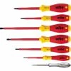 Le tournevis Wera 167 i/6 de remplacement Kraftform Plus Series 100 avec embout Black Point se compose de six tournevis TORX, avec une isolation testée VDE. Il est ainsi possible de travailler en toute sécurité jusqu’à 1 000 volts. La pointe Wera Black Point et le processus de durcissement complexe offrent durabilité, précision d’ajustement et protection optimisée contre la corrosion. Avec la poignée de forme de force multi-composants développée par Wera, toute la main trouve le contact avec la poignée. Les zones lisses et dures glissent à travers la main comme des roues lors de la préhension et permettent des vitesses de travail particulièrement élevées. Les zones souples et adhérentes sont des surfaces d’installation optimales pour la main et permettent une transmission de puissance élevée. Le marquage de la poignée avec le symbole de vis et la taille de la poignée facilite également la recherche dans le sac à outils et sur le lieu de travail. L’ensemble de tournevis est livré avec un rack qui peut être fixé au mur. Cela garantit un stockage approprié et un accès rapide.