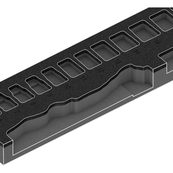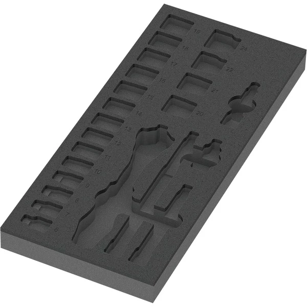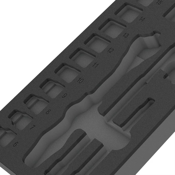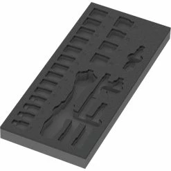 L’insert en mousse 9820 de Wera est parfait pour le chariot d’atelier Tool Rebel. Il offre de l’espace pour le jeu de clés à cliquet et à douille de 23 pièces 8000 B Zyklop Knarre 3/8 « Set 1. Dans l’insert en mousse durable de haute qualité sans évaporation chimique, chaque pièce trouve sa place permanente. Grâce aux renfoncements à 2 couleurs, les outils manquants sont rapidement remarqués. L’insert en mousse est hydrofuge et oléofuge, facile à nettoyer, facile à nettoyer et protège l’outil contre la saleté ou les chocs. Les outils reposent solidement dans la mousse grâce à des découpes de contour précises, mais sont faciles à enlever.