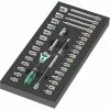 Le jeu de tournevis et de clé à douille 12 pièces 9713 de Wera est parfait pour le chariot d’atelier Tool Rebel. Il contient dix tournevis d’atelier, micro et poignée transversale avec fonction de maintien avec bille élastique pour vis à douille hexagonale et deux clés à douille avec arbre creux pour vis hexagonales. Les tournevis ont le profil Wera Hex-Plus. Hex-Plus permet aux vis à douille hexagonale de vivre plus longtemps. Il offre de plus grandes zones d’installation dans la tête de vis, l’effet d’encoche est réduit au minimum et la destruction du profil est évitée. Dans le même temps, des couples jusqu’à 20% plus élevés peuvent être transmis. Les outils Hex-Plus s’adaptent à n’importe quelle vis hexagonale standard. Pour les connexions à vis aux tiges filetées, les tournevis à clé à douille avec arbre creux sont utiles, la tige filetée peut pénétrer dans l’arbre creux du tournevis et l’écrou peut être vissé. Les tournevis Kraftform Micro avec leurs zones de force, de rotation rapide et de précision sont parfaits pour les connexions à vis mécaniques de précision. La main peut être soutenue sur le capuchon en douceur. Dans l’insert en mousse durable de haute qualité sans évaporation chimique, chaque clé a sa place fixe. Grâce aux renfoncements à 2 couleurs, les outils manquants sont rapidement remarqués. L’insert en mousse est hydrofuge et oléofuge, facile à nettoyer, facile à nettoyer et protège l’outil contre la saleté ou les chocs. Les outils reposent solidement dans la mousse grâce à des découpes de contour précises, mais sont faciles à enlever.