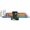 Le Wera Angle Screwdriver Set 3950/9 Hex-Plus Multicolor Imperial Stainless 1 contient neuf clés d’angle en pouces avec gainage de tuyau coloré (SPKL) en matériau rond en acier inoxydable. Le revêtement en plastique rend le travail plus confortable même à basse température et protège les doigts. Toutes les clés d’angle peuvent être trouvées rapidement grâce à leur code couleur et à leur marquage de taille résistant à l’abrasion. Les clés angulaires ont le profil Wera Hex-Plus. Il offre de plus grandes zones d’installation dans la tête de vis, l’effet d’encoche est réduit au minimum et la destruction du profil est évitée. Dans le même temps, des couples jusqu’à 20% plus élevés peuvent être transmis. La rotule sur la plus longue des deux jambes permet également de visser à un angle légèrement incliné. Cela permet de travailler en toute sécurité même dans des positions d’installation difficiles. Le matériau en acier inoxydable évite le transfert de rouille étrangère. Le matériau sans usure du clip de retenue fourni assure un maintien sûr des clés d’angle et un retrait facile.
