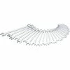 Clé mixte à cliquet Joker coudée côté cliquet et à levier d’inversion. Avec fonction de retenue assurée par une plaque métallique implantée dans la fourche, réduisant le risque d’égarer vis et écrous. La butée terminale intégrée est à même d’empêcher le glissement vertical hors de la tête de vis et permet le déploiement de couples élevés. La plaque métallique interchangeable située dans la fourche bloque les vis et les écrous grâce à ses dents extra-dures et diminue le risque de ripage. La morphologie dodécagonale engendre une liaison géométrique intime avec la vis ou l’écrou, réduisant le risque de ripage. L’angle de reprise de 30° seulement côté fourche permet d’éviter le retournement laborieux de la clé lors du vissage. e de reprise de 30° seulement côté fourche permet d’éviter le retournement laborieux de la clé lors du vissage. Mécanisme à inversion du cliquet à denture exceptionnellement fine (80 dents) côté œillet, offrant un maximum de souplesse même aux endroits exigus. Précision du mécanisme du cliquet audible au déclic. Le robuste élément d’encliquetage en deux parties assure en outre une extrême stabilité. Côté cliquet coudé à 15° pour des travaux sûrs à couples élevés. Le forgeage à géométrie spécialement étudiée assure une transmission de couple élevée et une haute résistance à la flexion. Réalisation en acier chrome-molybdène performant, avec revêtement nickel-chrome pour une haute tenue à la corrosion. Avec repéreur d’outils « Take it easy » d’identification des calibres par couleur.
