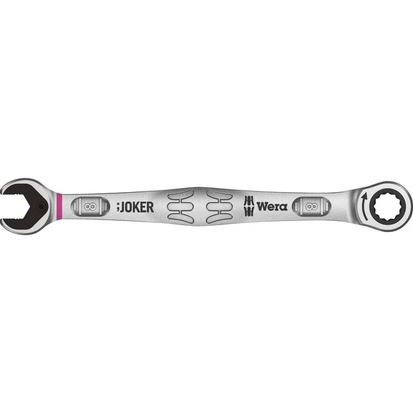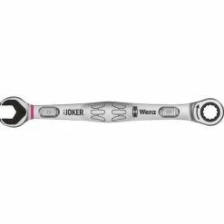 La clé à anneau et fourche Joker permet de visser pratiquement dans n’importe quelle situation des vis à haute vitesse et précision. La fonction vis de maintien du côté de l’anneau avec des dents en métal durci garder les écrous et boulons en place dans le travail. La géométrie spécialement conçue de la clé à anneau avec cliquet en combinaison avec de l’acier au chrome-molybdène et revêtement nickel-chrome assure une durée de vie très longue, la résistance à l’usure élevée et une protection durable contre la corrosion. La butée intégrée empêche la clé à constament devoir être repositionné ou atténuer le pouvoir de prévenir les blessures ou les dommages. Donc, on peut utiliser plus de force pour adoucir le travail. Le très petit angle de rétraction de 30 ° vous permet de travailler facilement et efficacement dans des espaces restreints.