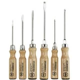 L’ensemble de tournevis 6 pièces 07149 de Wiha est fourni avec des poignées en bois de hêtre scellé, l’extrémité de la poignée est protégée par un capuchon en cuir. L’ensemble de tournevis est également équipé d’une fixation hexagonale à la lame pour faciliter le desserrage des vis fixes à l’aide d’une clé.